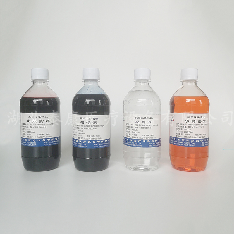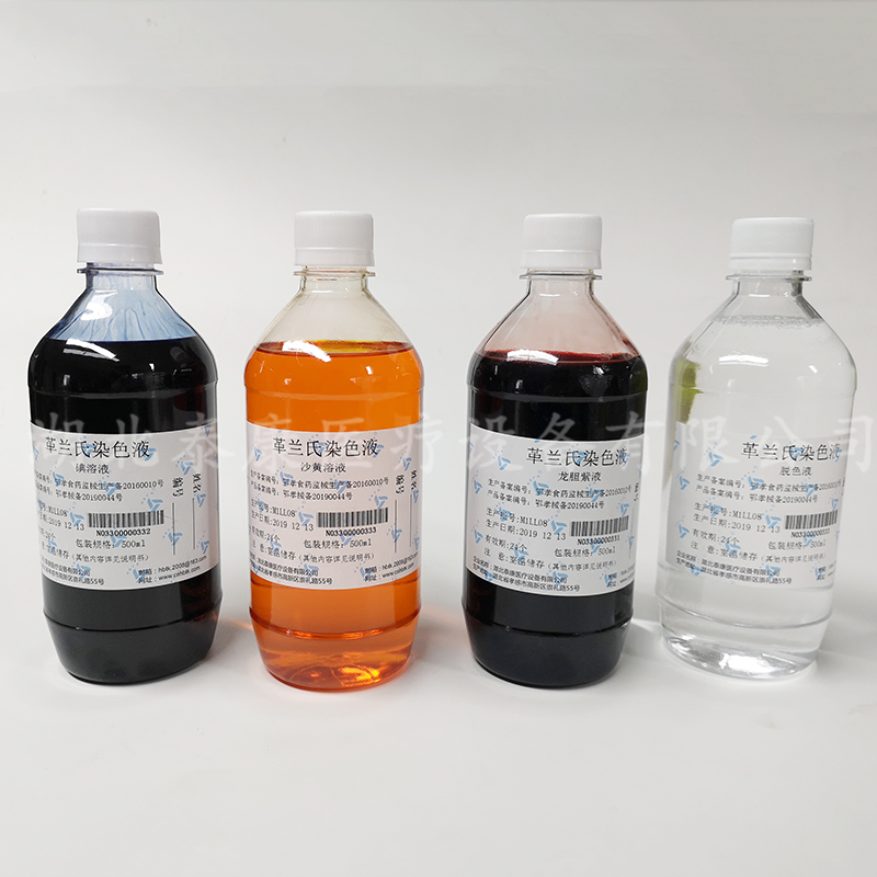 革蘭氏染色液由龍膽紫液、碘溶液、脫色液、沙黃染液組成,分為500ml*4瓶,或250ml*4瓶。