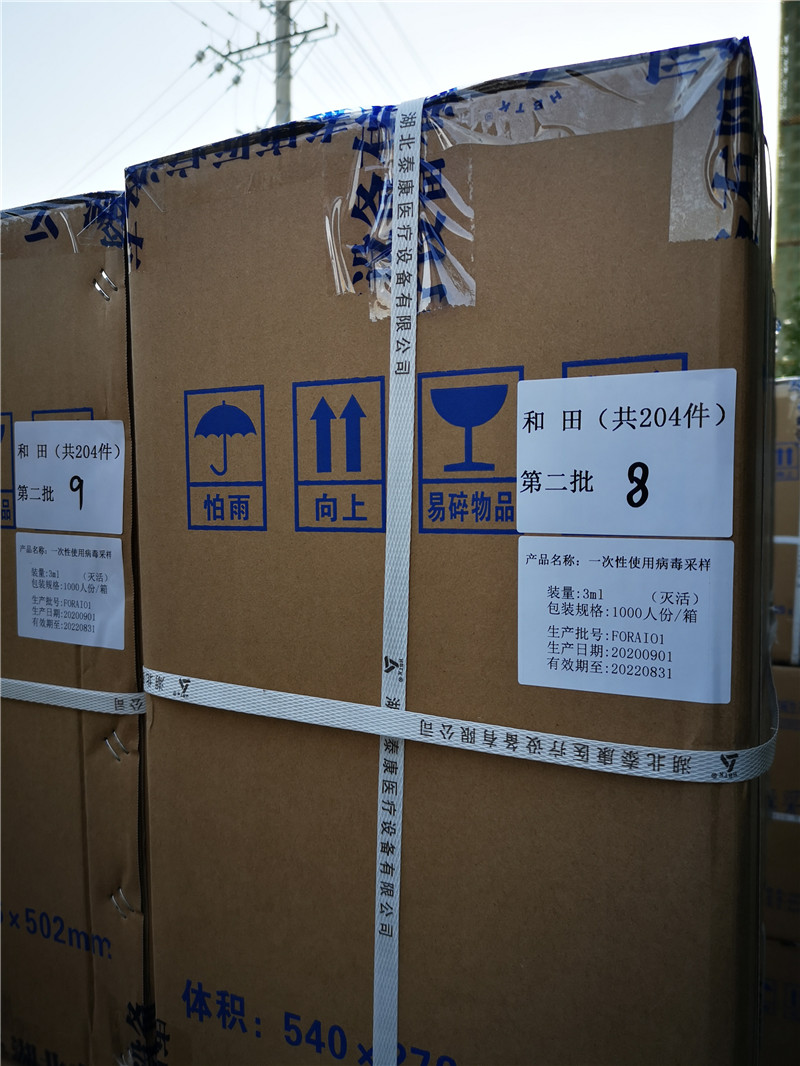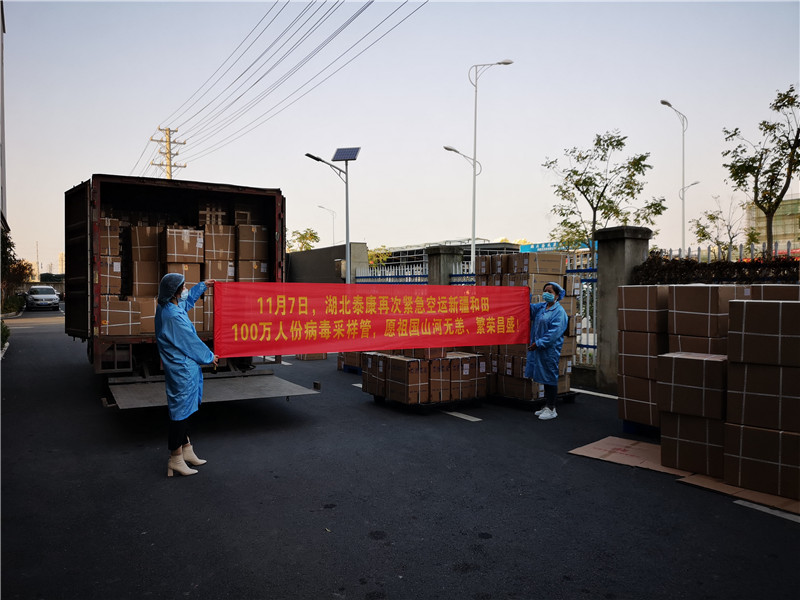 11月7日,湖北泰康再次空運(yùn)新疆和田100萬(wàn)人份病毒采樣管!愿祖國(guó)平安昌盛!