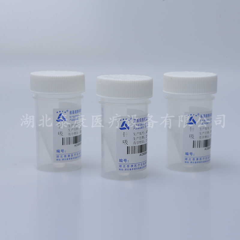 針吸液基細胞檢測處理試劑盒由湖北泰康特制的針吸保存液和申請單等組成,