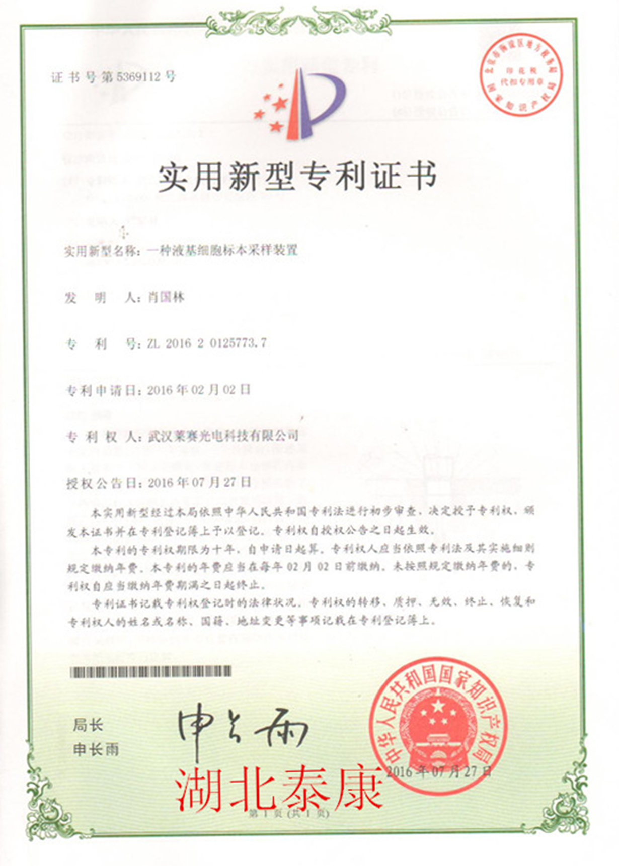 液基標(biāo)本采樣實(shí)用新型專利