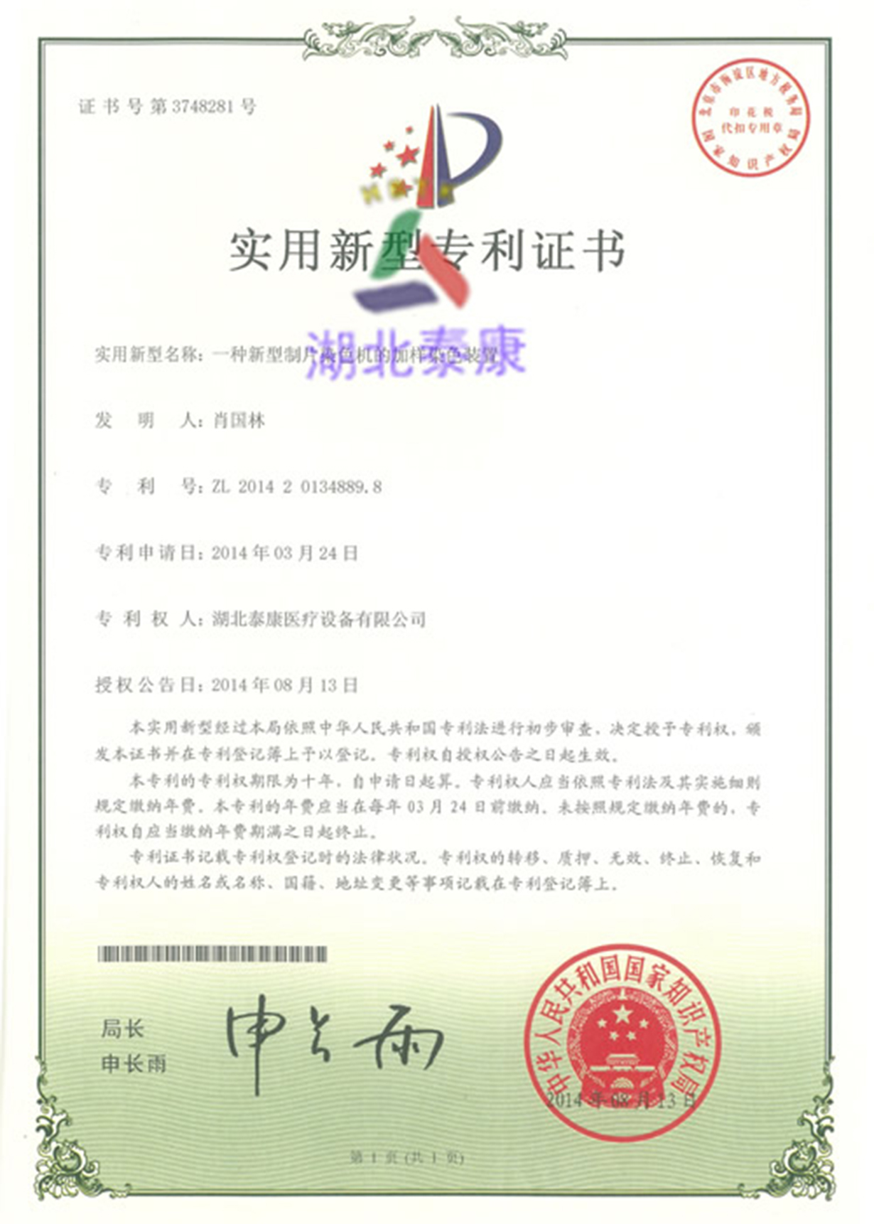 液基細(xì)胞制片機(jī)實(shí)用新型專利